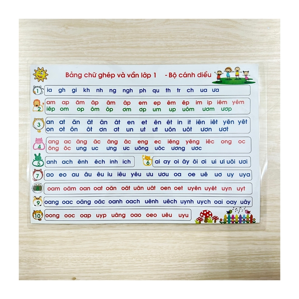 Bảng Âm Vần Kết Nối, Cánh Diều, Chân trời sáng tạo (Kích thước a4, Ép Pastic, 2 mặt)- Kích thước A4 được ép plastic siêu bền, màu sắc đẹp. - Bảng âm vần Gồm 2 mặt: 1 mặt bảng âm vần, 1 mặt cộng trừ trong phạm vi 10. Riêng bộ âm vần Chân trời sáng tạo có 1 mặt âm vần.- Sản phẩm phù hợp với tiền tiểu học và lớp 1 cho các bé làm quen với âm vần- Hiện tại bên em có sẵn các mẫu bảng âm vần bộ kết nối, bộ cánh diều, chân trời sáng tạo, bộ số 0 tới 100, bảng cộng trừ phạm vi 10, bảng chữ cái và chữ ghép. Khổ A0 dạng decal và bạt, A4 ép plastic.#bangamvan #amvan #chantroisangtao #canhdieu #ketnoichithucvoicuocsong #bangcong #bangtru #trangtri #behoc #bedanhvan #daybe #daybehoc #daybedanhvan