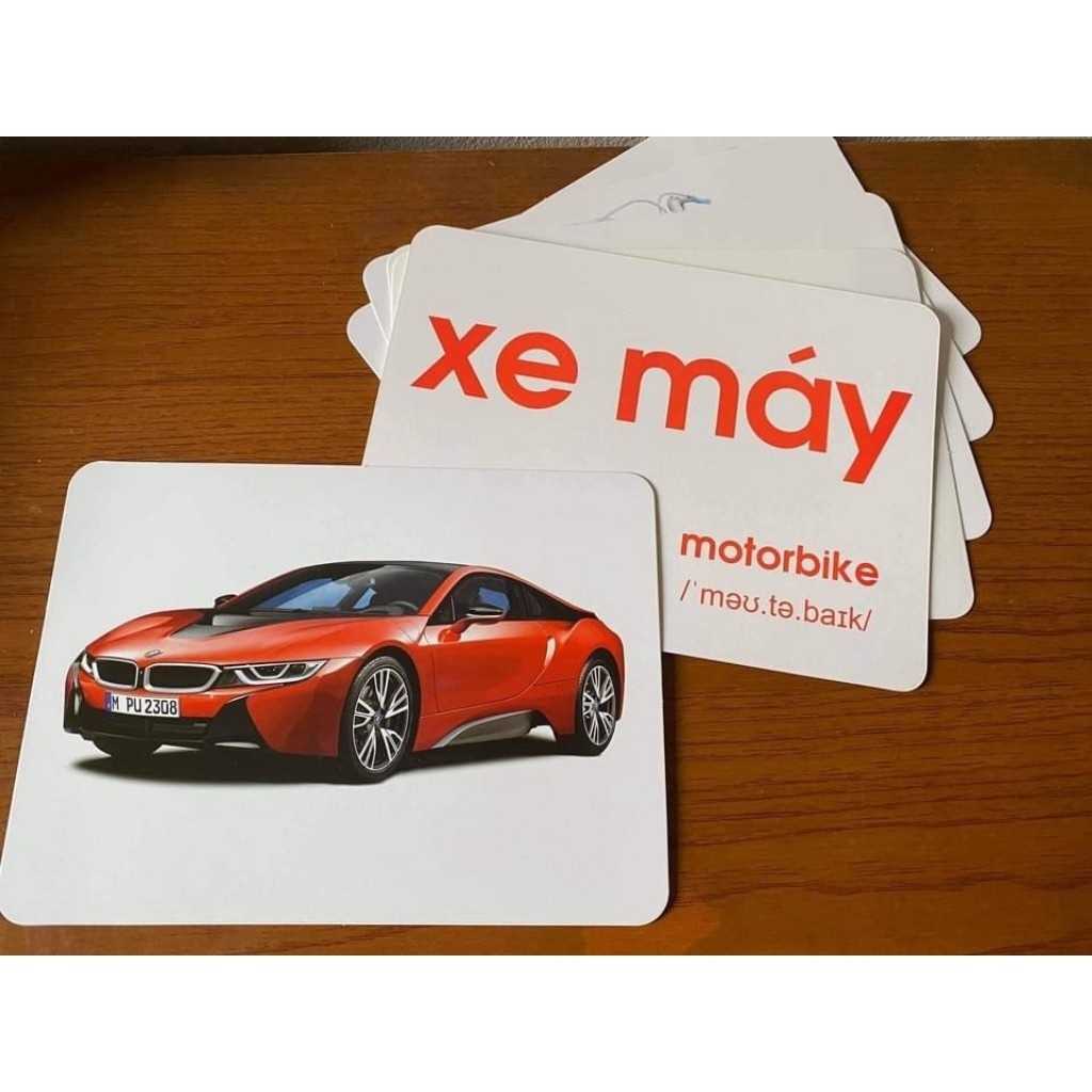 Bộ Thẻ Học Thông Minh Cho Bé Loại To Khổ A5☑️Bộ Thẻ Học Từ Vựng Kèm Hình Ảnh Size To 15x21cm Cho Bé- Dạy Trẻ Biết Đọc Sớm - Dạy Bé Nhận Biết Về Thế Giới Xung Quanh☑️Bộ thẻ là kết hợp hoàn hảo của 2 Bộ Thế Giới Xung Quanh ở mặt hình và bộ Từ Đơn - Từ Ghép Tiếng Việt ở mặt chữ. Một mặt là hình ảnh, một mặt là chữ tiếng Việt tương ứng. Ví dụ: hình ảnh là "quả Táo", chữ viết sẽ là "Táo". Giúp trẻ biết đọc sớm. Ngoài ra bộ thẻ Thông minh cho bé này còn có chữ tiếng Anh kèm phiên âm in nhỏ phía dưới chữ TV để mẹ có thể kết hợp dạy con song ngữ luôn. ☑️ Kích thước to ---> dễ dàng cho bé nhìn : Kích thước chuẩn khổ A5: 15cmx21cm☑️ Giấy Ivory i400 nhập khẩu màu trắng ngà, thẻ được bo tròn 4 góc rất an toàn cho bé và chống lóa tốt. Thẻ Cứng dày cầm đầm tay bé bẻ khó gãy và không thấm nước.☑️ Hộp cứng bảo vệ môi trường, tiện khi lấy ra bỏ vào. Bộ flashcard gồm 100 thẻ với nhiều 15 chủ đề đa dạng, phong phú, hình ảnh gần gũi với bé. Các chủ đề được thiết kế với màu sắc rực rỡ, đẹp mắt, sẽ kích thích thị giác của trẻ.Bề mặt giấy bám mực tốt, giúp hình ảnh và chữ viết bền màu theo thời gian. 1. Động vật nuôi,2. Động vật hoang dã, 3. Động vật dưới nước, 4. Chim và Côn trùng, 5. Các loại Quả, 6. Rau củ, 7. Các loài hoa, 8. Màu sắc, 9. Hình khối, 10. Gia đình, 11. Nghề nghiệp, 12. Giao thông, 13. Cờ các nước, 14. Đồ vật, 15. Hành động và Cảm xúc.Dùng cho trẻ từ 3 tháng - 6 tuổiCó Hướng dẫn sử dụng thẻ trong hộp#bothethongminhto #bothehocthongminh #thehocthongminhchobe #thehocthongminhchobetu0den6tuoi; #thehocthongminhchobe #thehocthongminhloaito #bothehocthongminh16chude #bothehocthongminhsongngu #thehocthongminhbangnhua #bothehocthongminhkhoa5 #giaoducsom #flashcard #flashcardthôngminh #dochoithongminh#phuongphapGlennDoman #phuongphapgiaoducsomGlennDoman, #glenndoman