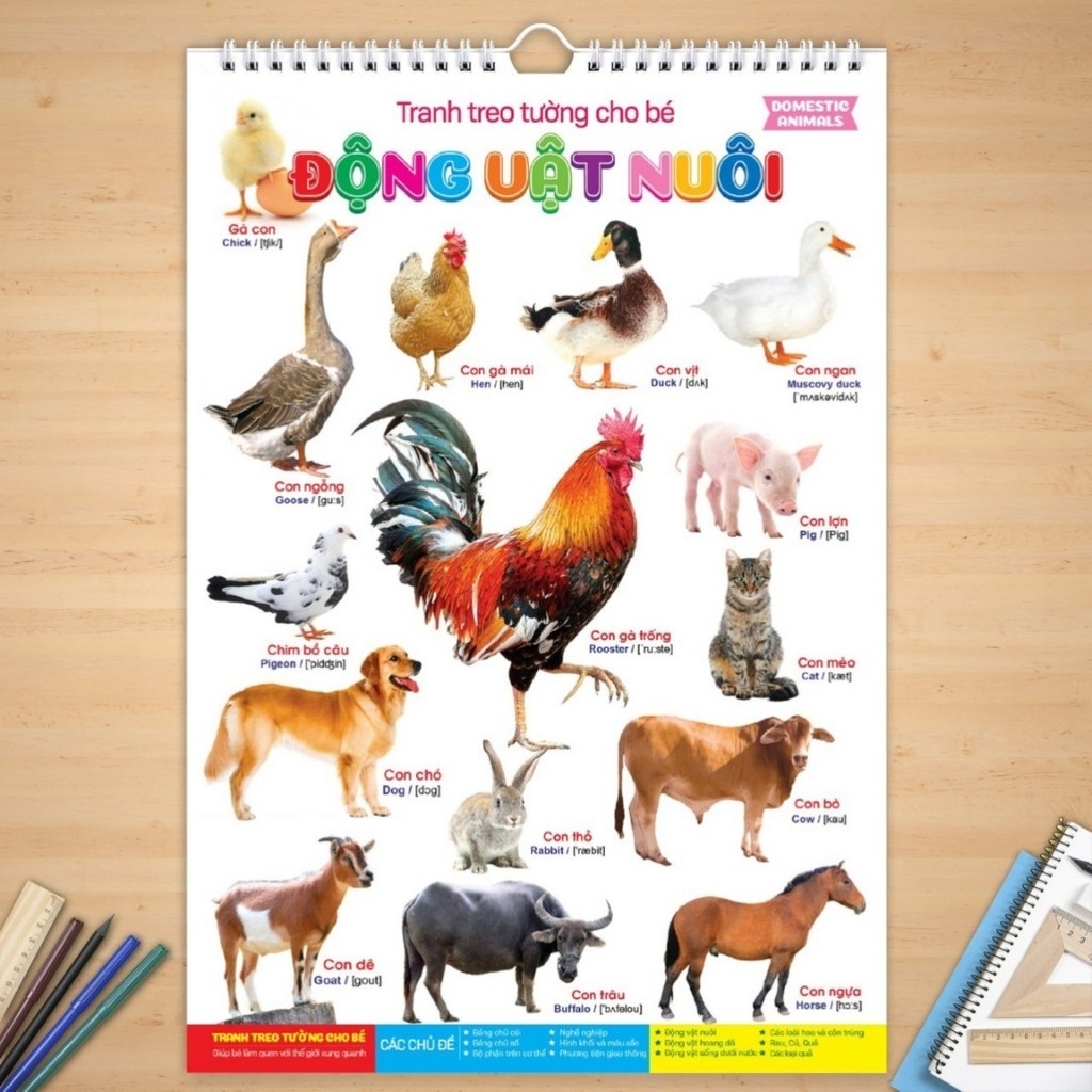 Bộ tranh treo tường cho bé - Phiên bản mới - 15 chủ đề, song ngữ Anh-Việt, phiên âm chuẩn theo Từ điển Oxford. Gồm 6 tờ in 2 mặt, tổng 12 tranh. In giấy C230 cán bóng 2 mặt. Khổ A2. Tác giả: Thanh HươngNXB Hà Nội15 chủ đề gồm có:1. Động vật nuôi2. Động vật hoang dã3. Động vật sống dưới nước4. Chim và Côn trùng5. Trái cây6,7. Rau củ và Hoa8. Đồ vật9. Phương tiện giao thông10, 11. Gia đình và Nghề nghiệp12, 13. Màu sắc và Hình dạng14. Bảng chữ cái tiếng Việt15. Số đếm 1-10Giá bán lẻ: 99.000đGiá sỉ: 2x Liên hệ Zalo 0904231168