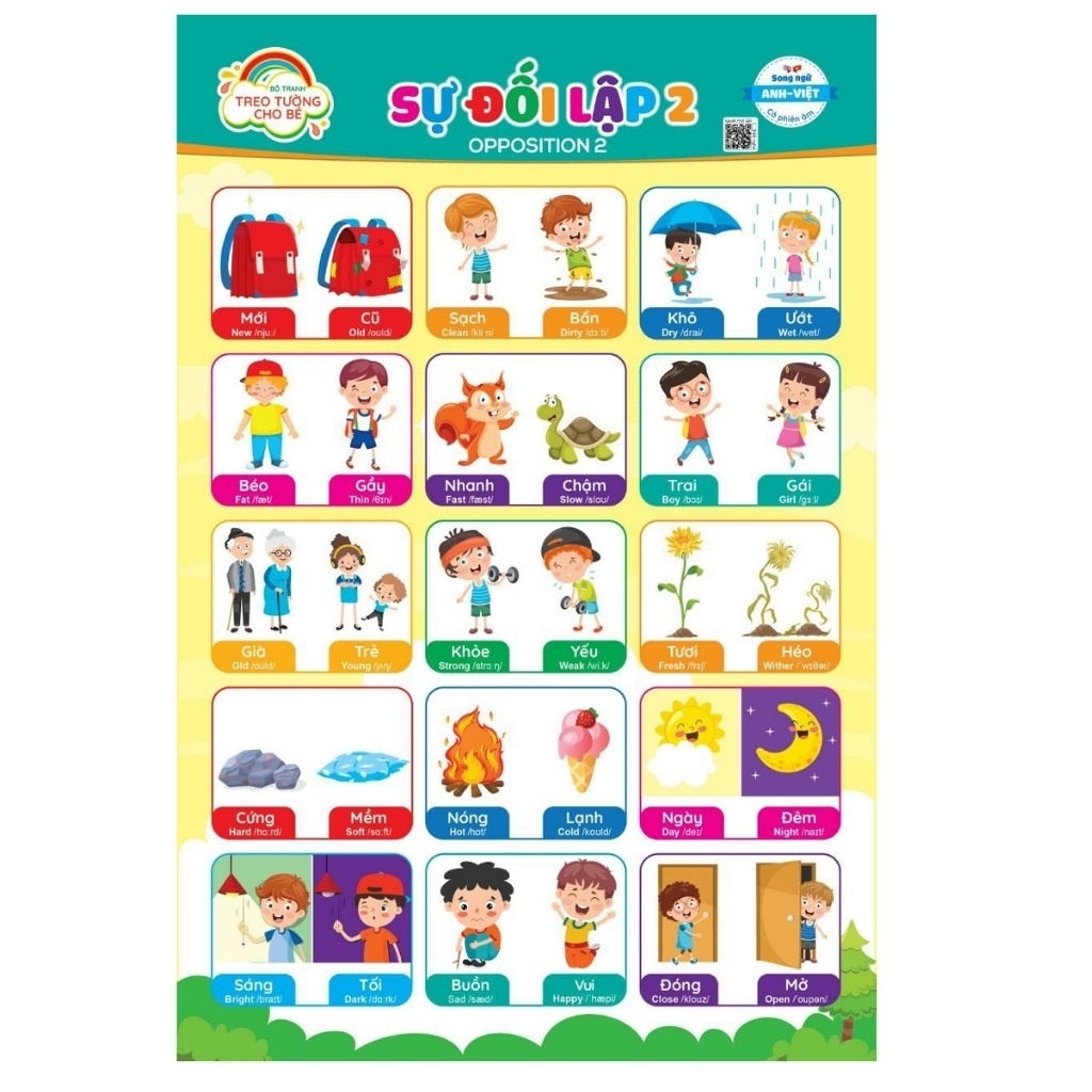 Bộ tranh treo tường kĩ năng cho bé - 10 chủ đề - quét mã âm thanh QR, song ngữ Anh-Việt👧🏻 Từ mẫu giáo lên tiểu học là bước tiến quan trọng để bé bước chân vào thế giới tri thức, cũng là một bước ngoặt lớn trong cuộc đời các bé. Chính vì vậy, bố mẹ cần quan tâm và đầu tư nhiều hơn trong việc chuẩn bị hành trang để con vào lớp 1. 🌸 Nơi ba mẹ sẽ tìm thấy những đầu sách tập tô, tập viết,… bổ ích dành cho bé chuẩn bị đến trường. Hãy để Nhà sách Hoa Anh Thảo đồng hành cùng cha mẹ trong việc chuẩn bị hành trang giúp bé tự tin hơn khi đến lớp.📜 THÔNG TIN CHI TIẾT: Bộ tranh treo tường kĩ năng cho bé - 10 chủ đề - quét mã âm thanh QR, song ngữ Anh-Việt☘ Bộ tranh treo tường kĩ năng cho bé - 10 chủ đề - quét mã âm thanh QR, song ngữ Anh-Việt, phiên âm chuẩn theo Từ điển Oxford. Gồm 5 tờ in 2 mặt, tổng 10 tranh. Tác giả: Thanh HươngNXB: Thanh NiênKhổ giấy: 40cmx60cmNăm: 202210 chủ đề gồm có:1. Hành động2. Thể thao3. Sở thích4. Cảm xúc5. Giao tiếp6. Địa điểm7. Sự đối lập 18. Sự đối lập 29. Thời tiết và bốn mùa trong năm10. Các ngày trong tuần và các tháng trong năm#sach #hoaanhthao #quyen #cuon #tap #vo #tranh #treo #tuong #chu #de #dochoi #nhasach #nhasachonline #treem #chobe #thieunhi #mamnon #tieuhoc #songngu #anhviet #vietanh #tuvung #nguphap #sachhay #hoatdong #camxuc #giaotiep #thoitiet #cacngaytrongtuan #thethao #sothich #tranhtreotuongchobe #bangchucaichobe #behocgiaotiep #kynangsong #songnguanhviet