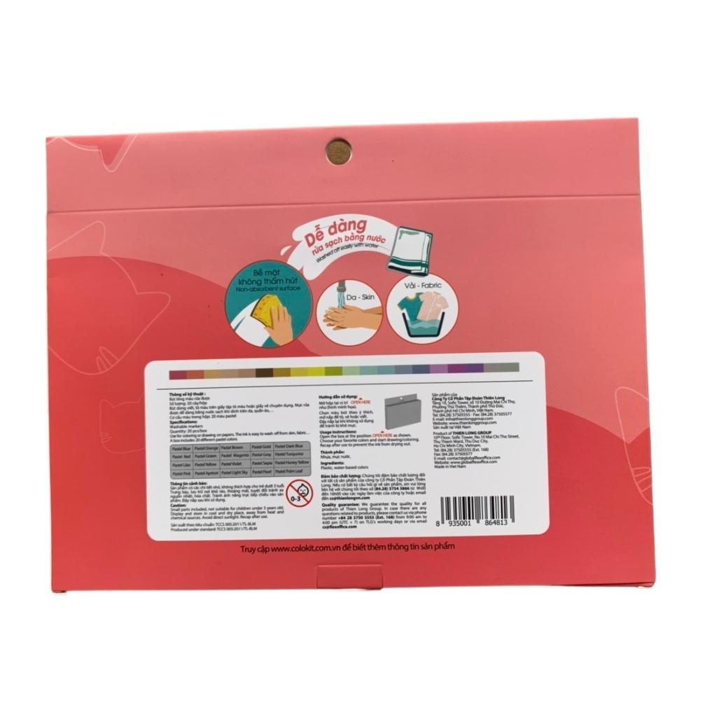 Bút Lông Màu Pastel Washable Fiber Pen Thiên Long Colokit SWM-C008 - Bút lông màu rửa được - Nét Thanh Nét ĐậmMô tả sản phẩmThương hiệu: Cty CP Tập Đoàn Thiên longXuất xứ: Việt namModel: SWM-C008Thông Số Kỹ ThuậtThương hiệu ColokitTrọng lượng 50 gramChất liệuThân bọc nhựa, ngòi sợi PolyesterLoại đầu bút 1 cây/ 1 đầu, Đóng gói 20 màu/ hộp/ kiện Bảo quảnTránh xa nguồn nhiệt, hóa chất. Bộ 20 màu #Pastel Washable #Fiber Pen thích hợp trang trí sổ tay, planner, penpal, góc học tập, album, handmade, calligraphy, bullet journal...Tone màu Pastel - màu Vintage - màu dịu mát và ấm áp, mang lại sự nhẹ nhàng, thanh lịch, thoải mái…cho cảm giác mới lạ, nổi bật cá tính.Mực không độc hại với người sử dụng, dễ dàng rửa sạch bằng nước trên các bề mặt như da, vải...Bộ sản phẩm màu #Pastel #Fiber Pen gồm: Blue, Red, Lilac, Pink, Orange, Green, Yellow, Apricot, Brown, Magenta, Violet, Light Sky, Gold, Gray, Sepia, Pearl, Dark Blue, Turquoise, Honey Yellow, Palm Leaf.#butlongmau #shopmamnho #butve #butmau #butmauruaduoc #fiberpen #butlongmaufiberpen #butlongmauthienlong #pastel