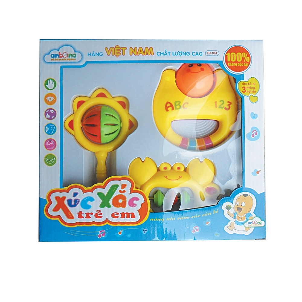 ĐỒ CHƠI HỘP 3 CHIẾC XÚC XẮC ANTONA LỤC LẠC HÌNH ĐỘNG VẬT DỄ THƯƠNG CHO BÉ TỪ 3 THÁNG TUỔI 📜 THÔNG TIN CHI TIẾT Đồ chơi Hộp 3 chiếc xúc xắc Antona lục lạc hình động vật dễ thương cho bé từ 3 tháng tuổi ☘ Chất liệu: Nhựa nguyên sinh, an toàn tuyệt đối cho bé ☘ Thương hiệu: Antona ☘ Xuất xứ: Việt Nam ☘ Màu sắc: Nhiều màu khác nhau ☘ Kích thước: 25 x 23 x 6 cm☘ Sản phẩm gồm: xúc xắc cua, xúc xắc chùy, xúc xắc bán nguyệt 📖 GIỚI THIỆU ĐỒ CHƠI HỘP 3 CHIẾC XÚC XẮC ANTONA LỤC LẠC HÌNH ĐỘNG VẬT DỄ THƯƠNG CHO BÉ TỪ 3 THÁNG TUỔI ❖ Xúc xắc lục lạc được làm từ 100% nhựa nguyên sinh, đảm bảo tuyệt đối an toàn cho bé khi vui chơi, đặc biệt là khi bé cầm, nắm và gặm sản phẩm.❖ Các chi tiết của xúc xắc được thiết kế không có ba via, các cạnh sắc đều được vê tròn, đảm bảo an toàn cho trẻ khi sử dụng❖ Hình dáng sản phẩm rất đáng yêu, ngộ nghĩnh và gần gũi với trẻ nhỏ.❖ Âm thanh có độ lớn vừa phải, phù hợp với thính giác của trẻ.❖ Âm thanh của xúc xắc có độ lớn vừa phải, phù hợp với thính giác của trẻ ❖ Sản phẩm gọn, xinh xắn, vừa với tay cầm của trẻ.❖ Bộ 3 cái xúc xắc giúp bé nhận biết màu sắc, khả năng cầm nắm, tăng cường khả năng vận động và phân biệt âm thanh #dochoi #xucxac #luclac #antoan #nhua #giaoduc #phatrien #chobe #trenho #antona #shopmamnho #dochoi #chobe #dochoi #luclac #xucxac #nhua #antoan