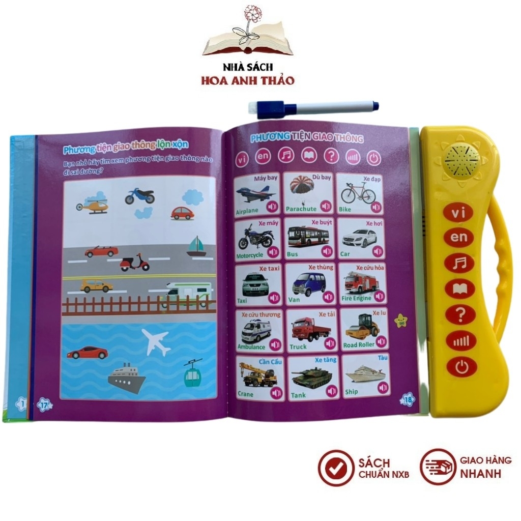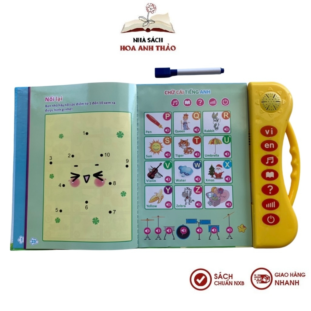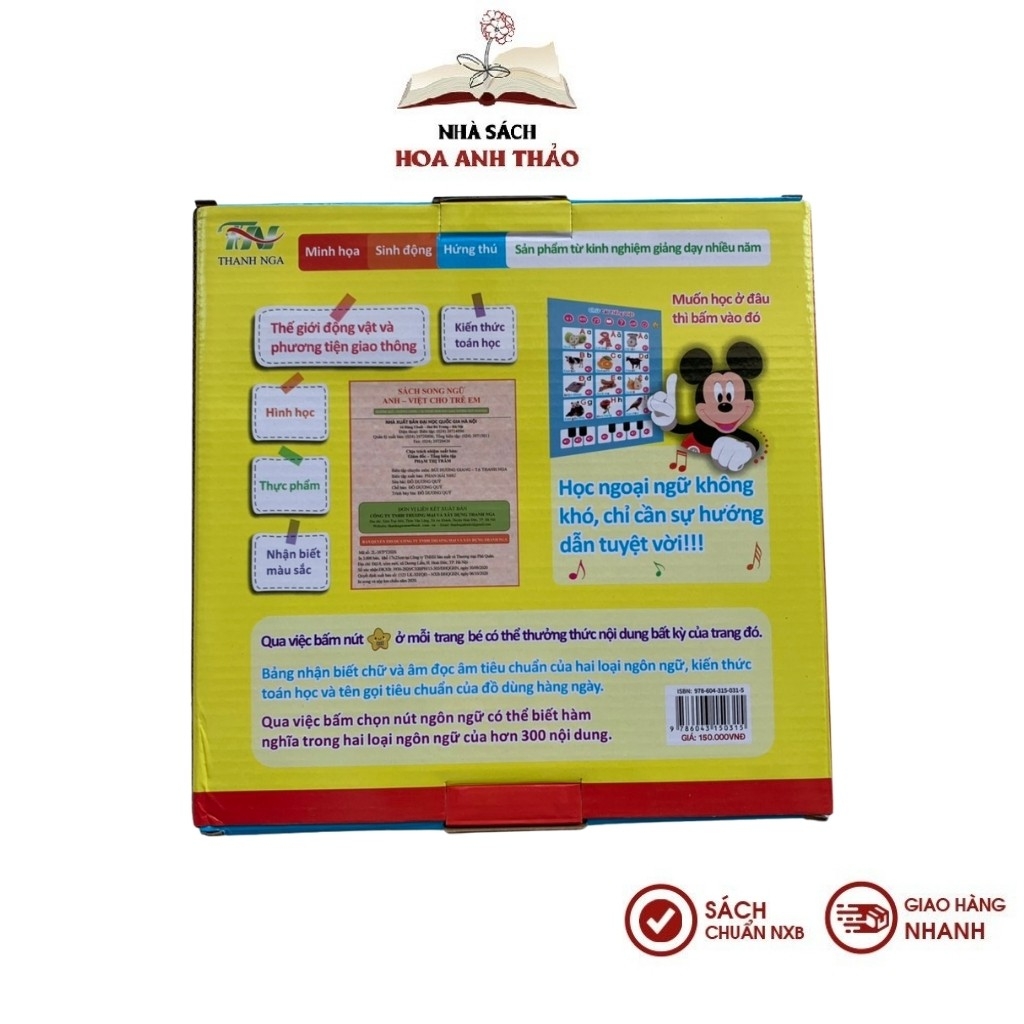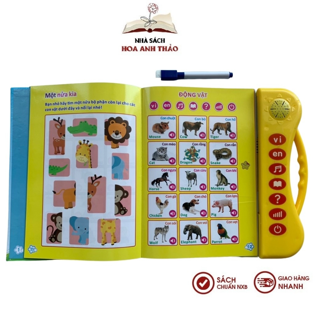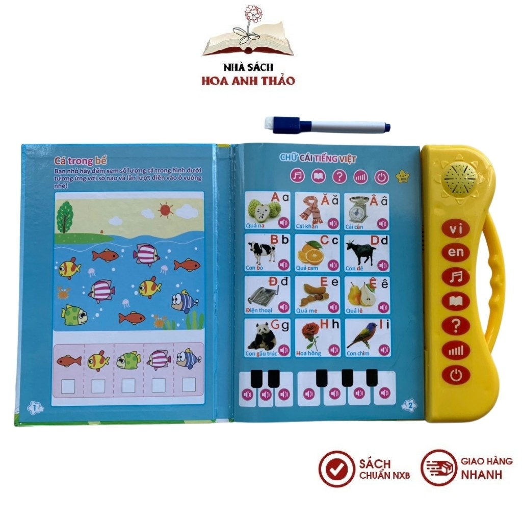 Sách- Điện tử song ngữ Anh- Việt cho trẻ em 1-7 tuổi📜 THÔNG TIN CHI TIẾT về Sách - Sách điện tử song ngữ Anh- Việt cho trẻ em 1-7 tuổi☘ Tác giả: Đỗ Quý Dương☘ Nhà xuất bản: Đại học Quốc Gia Hà Nội ☘ Nhà phát hành: Thanh Nga☘ Năm xuất bản: 2021☘ Số trang: 24 trang 📖 Sách điện tử song ngữ Anh- Việt cho trẻ em 1-7 tuổi❖ Cuốn sách điện tử thực sự ý nghĩa cho các bé từ 1-7 tuổi❖ Sách song ngữ Việt và Anh với nhiều hình minh họa sống động❖ Âm thanh giọng chuẩn, nhiều bài hát và câu chuyện cổ tích hay❖ Sách gồm 24 trang với nhiều chủ đề thú vị trong cuộc sống❖ Mỗi trang được trình bày bằng song ngữ ANH- VIỆT, giúp bé học cách phát âm tiếng việt và tiếng anh. Bé chỉ cần chọn hệ ngôn ngữ và nhấn vào hình ảnh cần học là có thể nghe và phát âm theo sách❖ Sách điện tử Anh-Việt được thiết kế với âm giọng chuẩn của tiếng Việt và Tiếng Anh.❖ Sách Anh- Việt còn được tích hợp nhiều câu truyện cổ tích hay mà các bé rất thích được nghe kể. chỉ cần nhấn nút trên bảng điều khiển và chọc câu truyện cần nghe. ❖ Ngoài ra sách còn có chức năng nghe nhạc và kiểm tra bài đã học, giúp ba mẹ luôn kiểm tra được những gì bé đã học được.NHÀ SÁCH HOA ANH THẢO CAM KẾT1. 100% Sách mới, Chuẩn nhà xuất bản 2. Sản phẩm được kiểm tra kỹ, đóng gói cẩn thận trước khi giao đến quý khách 3. Giao hàng trên toàn quốc4. Hỗ trợ đổi trả theo quy định của Shopee. ∎ Điều kiện áp dụng (trong vòng 07 ngày kể từ khi nhận sản phẩm) - Hàng hoá vẫn còn mới, chưa qua sử dụng - Hàng hoá bị lỗi hoặc hư hỏng do vận chuyển hoặc do nhà sản xuất ∎ Trường hợp được chấp nhận: - Hàng giao không đúng như đơn quý khách đặt hàng - Không đủ số lượng, không đủ bộ như trong đơn hàng ∎ Trường hợp không đủ điều kiện áp dụng chính sách: - Quá 07 ngày kể từ khi Quý khách nhận hàng- Gửi lại hàng không đúng mẫu mã, không phải sản phẩm của Nhà sách Hoa Anh Thảo - Không thích, không hợp, đặt nhầm mã, ...#sach #hoaanhthao #quyen #cuon #tranh #truyentranh #thuvien #hinhanh #khoahoc #songngu #anhviet #vietanh #tienganh #tiengviet #tre #be #nhasach #nhasachonline #truyen #thieunhi #mamnon #sachhay #sachtreem #sachdientu #sachsongngu# sachsongnguanhviet