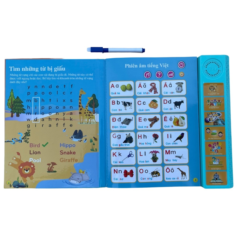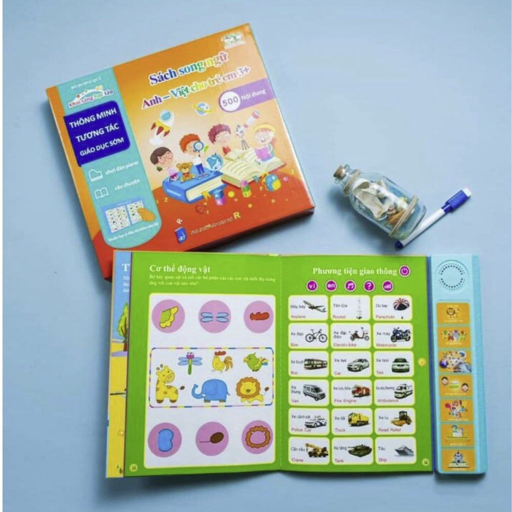 ☀ GIỚI THIỆU SẢN PHẨM:- Sách gồm 28 trang, hơn 500 nội dung với nhiều chủ đề đa dạng như gia đình , đồ vật,hoa quả , phương tiện giao thông, hình khối... kết hợp song song hai ngôn ngữ Anh-Việt, phiên bản này được thu từ giọng đọc thiếu nhi chuẩn rất đáng yêu và ngộ nghĩnh. - Ngoài các tính năng như các phiên bản cũ, sách tích hợp thêm phần đọc bảng cửu chương gồm bảng nhân và bảng cộng, giúp bé tăng hứng thú học học toán và nhẩm tính nhanh rất hiệu quả - Đặc biệt là phần đánh đàn hot nhất được tích hợp các bài hát hay, trẻ em yêu thích và bé nào cũng có thể đánh được, giúp bé thoả sức thể hiện tài năng nghệ thuật thiên bẩm.- Phần đọc truyện với 6 câu truyện cổ tích hay và đặc sắc cho bé, kèm các bản nhạc quen thuộc mà các bạn nhỏ rất yêu thích.- Sách tích hợp thêm nhiều trò chơi thú vị với bút mực có đầu xóa được. - Với cuốn sách này bé có thể học mà chơi chơi mà học rất bổ ích và tiện lợi phải không nào. Hãy đặt hàng ngay để nhận ưu đãi tốt nhé !(Phiên bản Đặc Biệt 2022) Sách nói Điện tử Song ngữ Anh - Việt cho trẻ em 3+, Sách điện tử đa chức năng giáo dục sớm☀ THÔNG SỐ CHI TIẾT:+ Kích thước: 18 x 25 cm+ Khối lượng: 470g+ Giá bìa: 250k+ Tất cả sách đều được shop test trước khi giao hàng đi. Một số trường hợp có thể do bên vận chuyển sơ ý làm hỏng (tỷ lệ rất nhỏ) shop cũng sẽ hỗ trợ các bạn đổi lại hàng mới nhanh nhất ạ.#dochoi #dochoigiaoduc #sachnoi #sachdientu #sachnoidientu #sachsongngu #sachnoisongngu #sachdientusongngu #sachnoidientusongngu #sacndientudachucnang #sachdientu3+ #sach #dien #tu #song #ngu #anh #viet #cho #tre #em #sachdientu #sachsongngu #sachnoi #treem #sachchobe #songngu #anhviet #sachquy #sachtreem #sachdientusongngu #sachdientuthongminhchobe #sachdientuthongminh#sachdientuchobehocnoi #sachdientuchobe