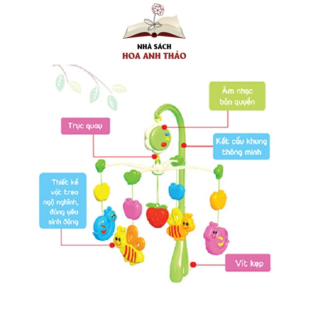 ĐỒ CHƠI TREO NÔI KHU VƯỜN CỦA BÉ ANTONA CÓ NHẠC RU CHO BÉ TỪ 2 THÁNG TUỔI TRỞ LÊN 📜 THÔNG TIN CHI TIẾT Đồ chơi Treo nôi Khu vườn của bé Antona có nhạc ru cho bé từ 2 tháng tuổi trở lên ☘ Chất liệu: Nhựa nguyên sinh, an toàn tuyệt đối cho bé ☘ Thương hiệu: Antona ☘ Xuất xứ: Việt Nam ☘ Màu sắc: Nhiều màu khác nhau ☘ Kích thước: 45 x 30 x 10 cm📖 GIỚI THIỆU ĐỒ CHƠI TREO NÔI KHU VƯỜN CỦA BÉ ANTONA CÓ NHẠC RU CHO BÉ TỪ 2 THÁNG TUỔI TRỞ LÊN ❖ Sản phẩm Kệ treo “Khu vườn của bé” là một sản phẩm đồ chơi dành cho bé từ 2 tháng tuổi trở lên, giúp bé phát triển một cách toàn diện nhất về cả thể chất và tinh thần❖ Với thiết kế đặc biệt lấy cảm hứng từ thiên nhiên tươi đẹp, kệ treo “Khu vườn của bé” là một khu vườn thu nhỏ với hoa, các loại quả và cả các bạn động vật ngộ nghĩnh, từ đó cho bé cảm nhận, khám phá thế giới gần gũi và thú vị xung quanh mình cùng với bài hát ru có lời thể hiện tình yêu thương của mẹ dành cho con❖ Hình dáng sản phẩm rất đáng yêu, ngộ nghĩnh và gần gũi với trẻ nhỏ.❖ Âm thanh có độ lớn vừa phải, phù hợp với thính giác của trẻ.❖ Sản phẩm được làm từ 100% nhựa nguyên sinh và chất liệu bột màu nhập khẩu cao cấp, đảm bảo tuyệt đối an toàn cho bé ❖ Kết cấu dễ tháo lắp và kích thước phù hợp giúp bé chơi được nhiều cách khác nhau, thích hợp để bé chơi được ở nhiều lứa tuổi khác nhau.❖ Kệ treo “Khu vườn của bé” có bài hát ru quen thuộc sẽ nhẹ nhàng đưa bé vào giấc ngủ ngon nhanh chóng. Âm nhạc giúp đánh thức cảm xúc trong bé, giúp cải thiện EQ, tăng IQ, giúp bé sớm làm quen với Tiếng Việt, hỗ trợ bé học nói, học hát sớmNHÀ SÁCH HOA ANH THẢO CAM KẾT1. 100% Sách mới, Chuẩn nhà xuất bản 2. Sản phẩm được kiểm tra kỹ, đóng gói cẩn thận trước khi giao đến quý khách 3. Giao hàng trên toàn quốc4. Hỗ trợ đổi trả theo quy định của Shopee. ∎ Điều kiện áp dụng (trong vòng 07 ngày kể từ khi nhận sản phẩm) - Hàng hoá vẫn còn mới, chưa qua sử dụng - Hàng hoá bị lỗi hoặc hư hỏng do vận chuyển hoặc do nhà sản xuất ∎ Trường hợp được chấp nhận: - Hàng giao không đúng như đơn quý khách đặt hàng - Không đủ số lượng, không đủ bộ như trong đơn hàng ∎ Trường hợp không đủ điều kiện áp dụng chính sách: - Quá 07 ngày kể từ khi Quý khách nhận hàng- Gửi lại hàng không đúng mẫu mã, không phải sản phẩm của Nhà sách Hoa Anh Thảo - Không thích, không hợp, đặt nhầm mã, ...#dochoi #sach #hoaanhthao #treonoi #khuvuoncuabe #hoaqua #dongvat #nhacru #amthanh #antoan #nhua #truyensinh #nhasach #nhasachonline #giaoduc #phatrien #tuduy #sangtao #ngonngu #kynangsong #noi #hatru
