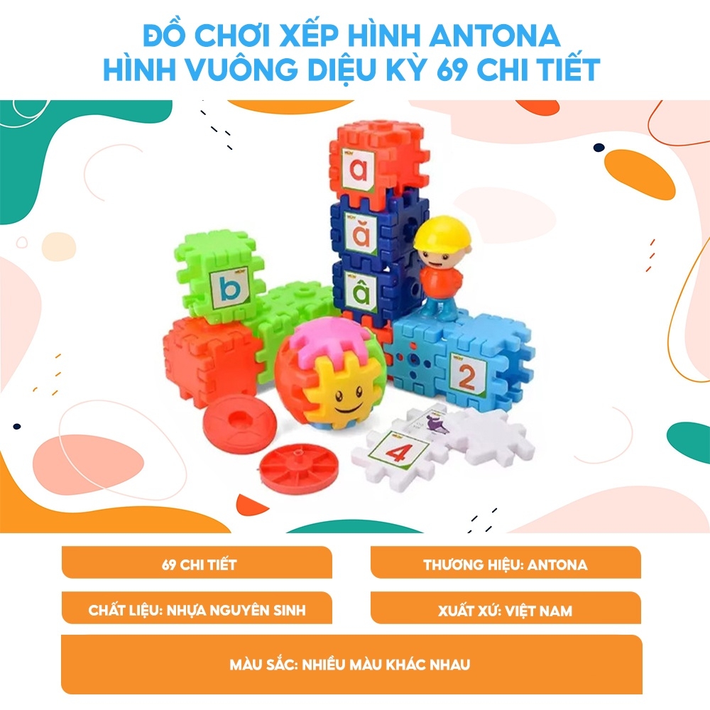 ĐỒ CHƠI XẾP HÌNH ANTONA HÌNH VUÔNG DIỆU KỲ 69 CHI TIẾT 📜 THÔNG TIN CHI TIẾT Đồ chơi xếp hình Antona hình vuông diệu kỳ 69 chi tiết ☘ Chất liệu: Nhựa nguyên sinh, an toàn tuyệt đối cho bé ☘ Thương hiệu: Antona ☘ Xuất xứ: Việt Nam ☘ Màu sắc: Nhiều màu khác nhau ĐỒ CHƠI XẾP HÌNH ANTONA HÌNH VUÔNG DIỆU KỲ 69 CHI TIẾT ❖ Đồ chơi xếp hình lắp ghép hình vuông diệu kỳ 69 chi tiết bao gồm nhiều loại miếng ghép đa dạng khác nhau ❖ Bộ lắp ghép được làm từ 100% nhựa nguyên sinh an toàn ❖ Các cạnh của bộ lắp ghép đều được vê tròn, đảm bảo an toàn khi sử dụng ❖ Đồ chơi xếp hình lắp ghép hình vuông diệu kỳ có màu sắc đa dạng, phong phú, bắt mắt trẻ nhỏ, lựa chọn hình ảnh gần gũi thân thiện với cuộc sống hàng ngày ❖ Trong quá trình chơi với sản phẩm hình vuông diệu kỳ , bé sẽ học hỏi thêm được nhiều kỹ năng và kiến thức cần thiết cho cuộc sống: học lắp ghép, học tưởng tượng, giúp bé khám phá thế giới xung quanh, phát triển trí thông minh và óc sáng tạo NHÀ SÁCH HOA ANH THẢO CAM KẾT1. 100% Sách mới, Chuẩn nhà xuất bản 2. Sản phẩm được kiểm tra kỹ, đóng gói cẩn thận trước khi giao đến quý khách 3. Giao hàng trên toàn quốc4. Hỗ trợ đổi trả theo quy định của Shopee. ∎ Điều kiện áp dụng (trong vòng 07 ngày kể từ khi nhận sản phẩm) - Hàng hoá vẫn còn mới, chưa qua sử dụng - Hàng hoá bị lỗi hoặc hư hỏng do vận chuyển hoặc do nhà sản xuất ∎ Trường hợp được chấp nhận: - Hàng giao không đúng như đơn quý khách đặt hàng - Không đủ số lượng, không đủ bộ như trong đơn hàng ∎ Trường hợp không đủ điều kiện áp dụng chính sách: - Quá 07 ngày kể từ khi Quý khách nhận hàng- Gửi lại hàng không đúng mẫu mã, không phải sản phẩm của Nhà sách Hoa Anh Thảo - Không thích, không hợp, đặt nhầm mã, ...#dochoi #sach #hoaanhthao #lapghep#xephinh #hinhkhoi #hinhvuong #dieuky #69chitiet #chitiet #antoan #nhua #mausac #hinhkhoi #toanhoc #nguyensinh #nhasach #nhasachonline #giaoduc #phatrien #tuduy #sangtao #ngonngu #kynangsong #antona #antoan
