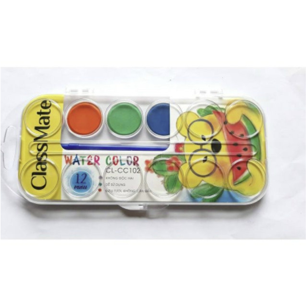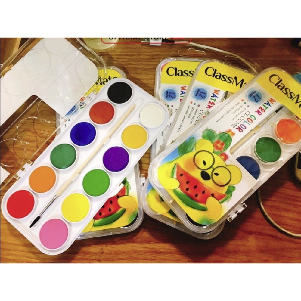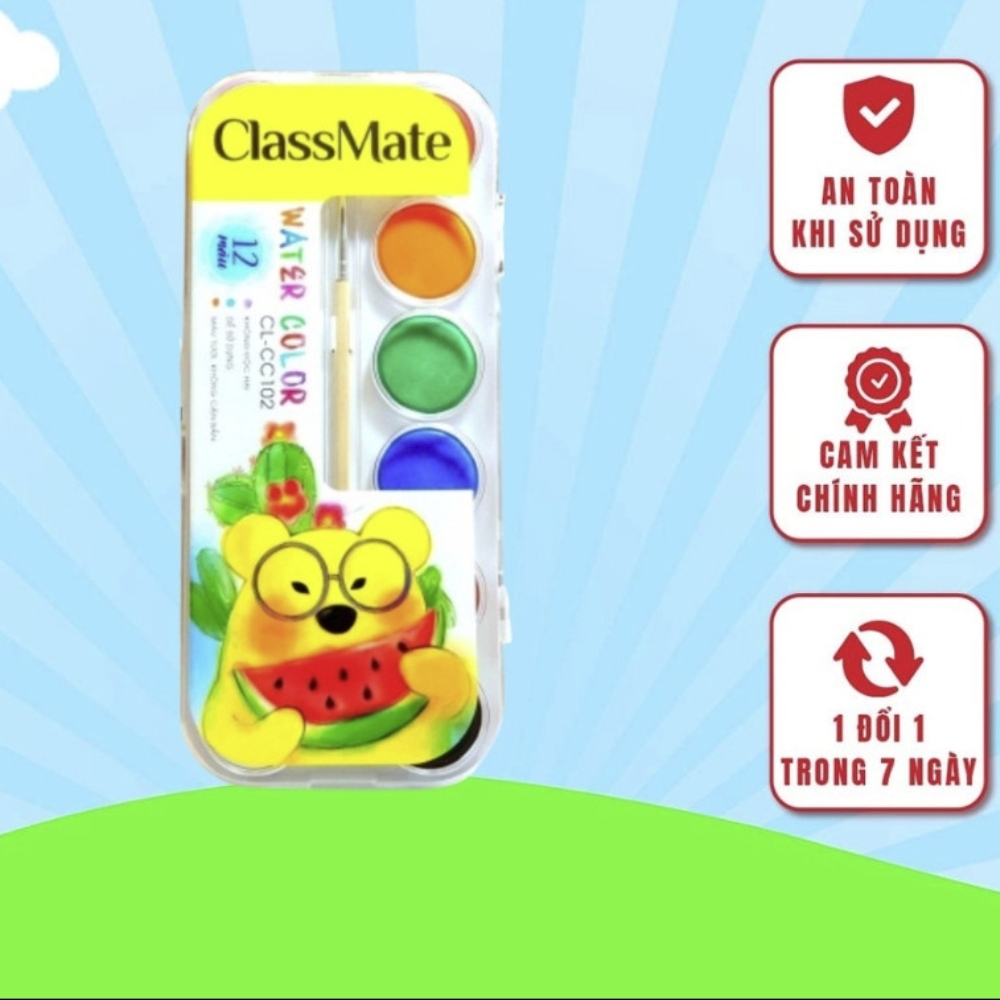 Màu Nước Bộ 12 Màu CLASSMATE Độ Bám Giấy Tốt, Khô Nhanh, An Toàn Cho Người Dùng CL-CC102💥 THÔNG TIN SẢN PHẨM- Thương hiệu: Classmate- Xuất xứ: Trung Quốc- Quy cách: Hộp 12 màu- Sắc màu chuẩn, sinh động, tươi sáng- Màu của bút rất sắc nét, mịn, không bị phai, bong tróc theo thời gian. 💥 ƯU ĐIỂM CỦA SẢN PHẨM- Dễ dàng điều chỉnh độ đậm nhạt, màu khô nhanh, không độc hại, an toàn cho sức khỏe người sử dụng.- Sắc màu ổn định, bền lâu, giúp lưu giữ tác phẩm lâu hơn các loại màu nước thông thường trên thị trường.- Sản phẩm có độ bám giấy, độ phủ tốt, có thể chồng màu, pha trộn màu dễ dàng. Màu nước đi kèm một cọ nhựa giúp bé tô vẽ ý tưởng dễ dàng.- Mỗi màu được bảo quản trong một hộp nhựa riêng có nắp đậy kín, tránh vi khuẩn, bụi bẩn xâm nhập.💥 HƯỚNG DẪN BẢO QUẢN- Để ở nơi khô ráo thoáng mát, không tiếp xúc với nhiệt độ cao.- Dùng xong phải cho vào hộp.💥 CAM KẾT CỦA SHOP- Sản phẩm chính hãng- Bảo hành theo quy định của nhà sản xuất. - Giá cả hợp lý, cạnh tranh trên thị trường.- Hỗ trợ đổi và trả hàng cho những sản phẩm bị thiếu.#hopmau #maunuoc12mau #bomaunuoc12mau #maunuoc #maunuoctotranh #maunuocclassmate #mauve #tomau #vetranh #tapto #dodunghoctap #hocsinh #classmate