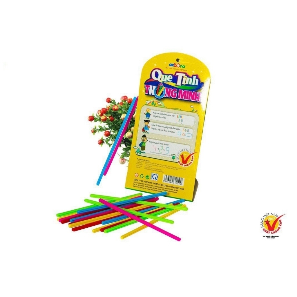 BỘ QUE TÍNH THÔNG MINH ANTONA📜 THÔNG TIN CHI TIẾT Bộ Que Tính thông minh antona- Chất liệu: nhựa nguyên sinh cao cấp và an toàn cho trẻ- Thương hiệu: antona - Xuất xứ: Việt Nam - Màu sắc: Nhiều màu khác nhau- Độ tuổi phù hợp: trẻ từ 3 tuổi trở lên.- Bao gồm: 20 que tính nhiều màu sắc- Kích thước: 12.5x24cmBỘ QUE TÍNH TOÁN HỌC BẰNG NHỰA - NHỰA AN TOÀN Que tính thông minh Antona No.159 gồm 20 que tính với màu sắc khác nhau giúp bé học các phép toán đơn giản. Sản phẩm bằng nhựa nguyên sinh an toàn, cho bé trên 3 tuổi.- Giúp bé nhận biết màu sắc, học đếm- Giúp bé làm các phép tính, xếp các hình học đơn giản- Kích thước nhỏ gọn, trọng lượng nhẹ, phù hợp cho bé.- Hình thức, mẫu mã đẹp.- Bộ que tính thông minh Antona được làm bằng nhựa an toàn nên có độ bền cao và an toàn .Giúp bé nhận biết màu sắc, học đếmSản phẩm còn giúp bé học các phép tính đơn giản và xếp các hình đơn giản như hình vuông, hình tam giác#quetinh #qutinhantona #boquetinhthongminhantona #quetinhthongminh