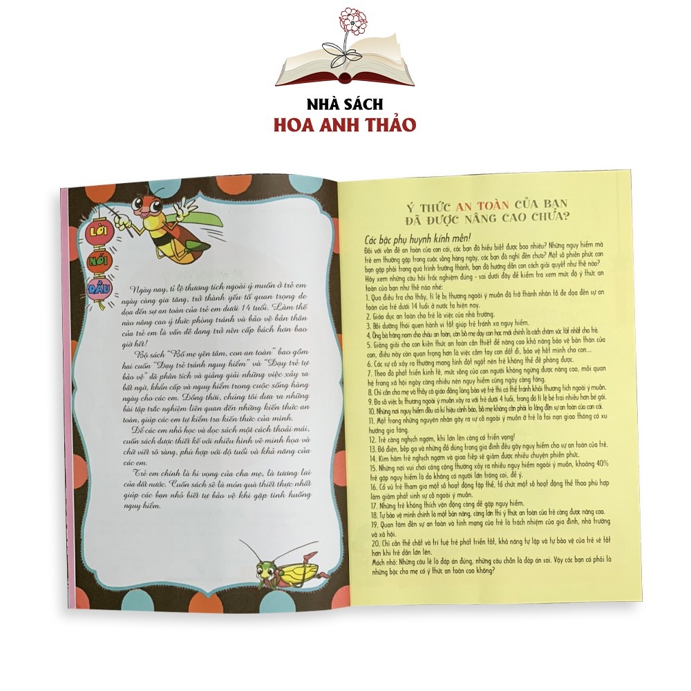 SÁCH - DẠY TRẺ TỰ BẢO VỆ VÀ TRÁNH NGUY HIỂM CHO TRẺ TỪ 5 ĐẾN 15 TUỔI 📜 THÔNG TIN CHI TIẾT Sách - Dạy trẻ tự bảo vệ và tránh nguy hiểm cho trẻ từ 5 đến 15 tuổi ☘ Tác giả: Lưu Đào ☘ Nhà xuất bản: NXB Thanh Niên ☘ Nhà phát hành: Đinh Tị ☘ Năm xuất bản: 2018☘ Số trang: 104 trang☘ Độ tuổi: 5-15 tuổi 📖 GIỚI THIỆU SÁCH DẠY TRẺ TỰ BẢO VỆ VÀ TRÁNH NGUY HIỂM CHO TRẺ TỪ 5 ĐẾN 15 TUỔI ❖ Bộ sách Bố mẹ yên tâm, con an toàn gồm hai cuốn Dạy trẻ tránh nguy hiểm và Dạy trẻ tự bảo vệ đề cập đến những tình huống bất ngờ, nguy hiểm và khẩn cấp trong cuộc sống hàng ngày, nêu ra các phương pháp xử lí đơn giản, dễ hiểu, nhanh gọn và hợp lí, cùng với những bài trắc nghiệm nho nhỏ bổ ích, giúp các em nắm vững kĩ năng sống, biết tự xử lí, tự bảo vệ mình khi gặp những tình huống nguy hiểm. ❖ Bố mẹ yên tâm, con an toàn là bộ sách dạy trẻ các kỹ năng sống thiết thực nhất, bổ ích nhất, là "vệ sĩ" bảo vệ con lớn lên an toàn và khỏe mạnh!NHÀ SÁCH HOA ANH THẢO CAM KẾT1. 100% Sách mới, Chuẩn nhà xuất bản 2. Sản phẩm được kiểm tra kỹ, đóng gói cẩn thận trước khi giao đến quý khách 3. Giao hàng trên toàn quốc4. Hỗ trợ đổi trả theo quy định của Shopee. ∎ Điều kiện áp dụng (trong vòng 07 ngày kể từ khi nhận sản phẩm) - Hàng hoá vẫn còn mới, chưa qua sử dụng - Hàng hoá bị lỗi hoặc hư hỏng do vận chuyển hoặc do nhà sản xuất ∎ Trường hợp được chấp nhận: - Hàng giao không đúng như đơn quý khách đặt hàng - Không đủ số lượng, không đủ bộ như trong đơn hàng ∎ Trường hợp không đủ điều kiện áp dụng chính sách: - Quá 07 ngày kể từ khi Quý khách nhận hàng- Gửi lại hàng không đúng mẫu mã, không phải sản phẩm của Nhà sách Hoa Anh Thảo - Không thích, không hợp, đặt nhầm mã, ...#sach #hoaanhthao #quyen #cuon #tap #vo #kinangsong #daytre #tranhnguyhiem #tuve #cuonsach #nhasach #giaoduc #tre #em #trenho #treem #lop1 #embe #chobe #thieunhi #phattrien #4tuoi #6tuoi #5tuoi #7tuoi #sachhay #nhasachonline #sachlop1 #iq #tuduy #tritue #chude #nuoidaycon