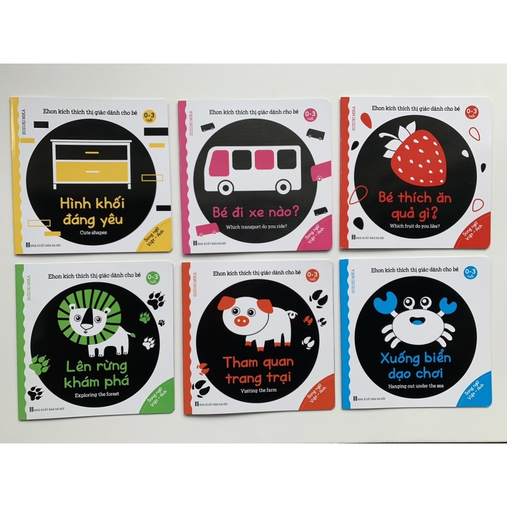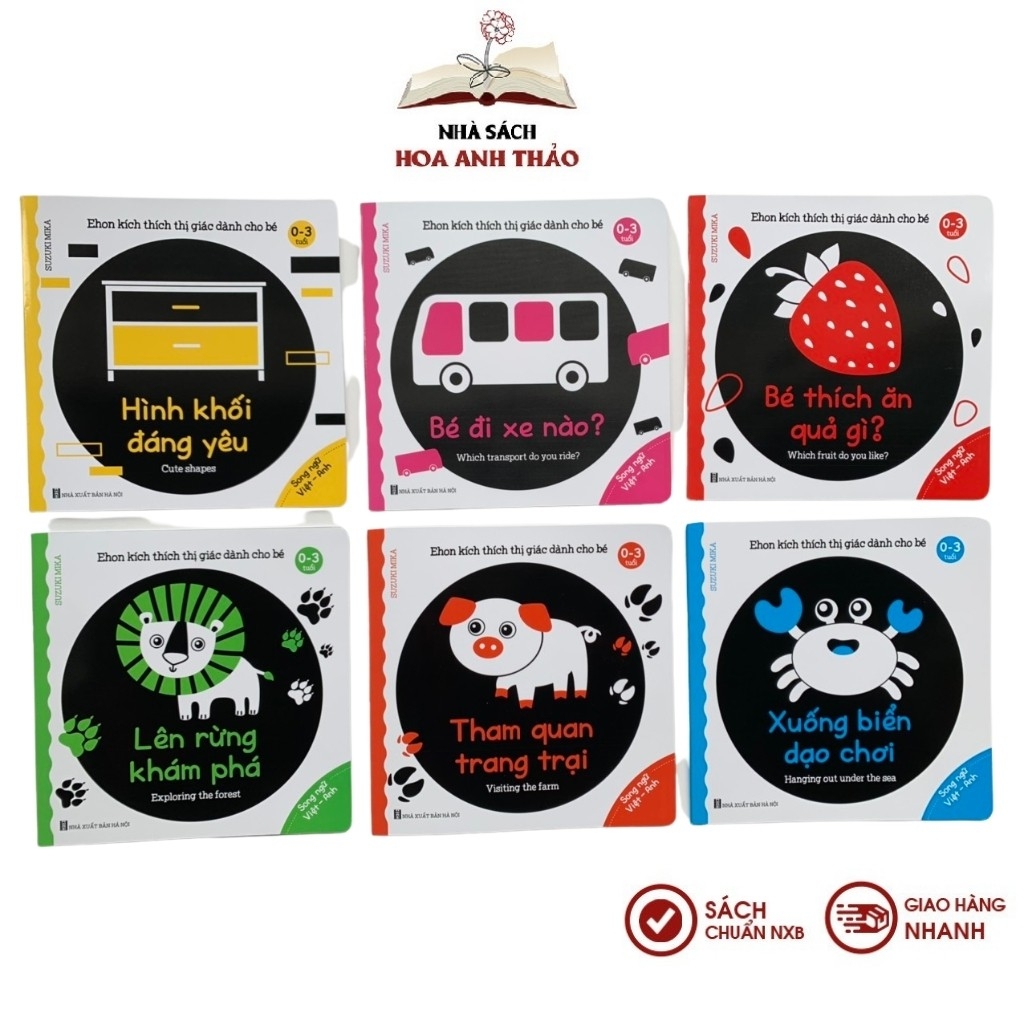SÁCH EHON KÍCH THÍCH THỊ GIÁC DÀNH CHO BÉ 0-3 TUỔI, CHẤT LIỆU GIẤY CHỐNG THẤM NƯỚC, BỘ 6 CUỐN👧🏻 Ehon là truyện được minh họa bằng tranh ảnh với những nội dung hoặc đề tài hết sức gần gũi, nuôi dưỡng tâm hồn trẻ ngày từ khi còn bé. Ehon như một cánh cửa không thể thiếu để con có thể tiến gần hơn với tri thức rộng lớn bao la ngoài kia, là khởi nguồn cho những đam mê, và thói quen đọc sách. Với Ehon cha mẹ có thể trao đổi tình cảm với con, lắng nghe con và thấu hiểu con 📜 THÔNG TIN CHI TIẾT Sách - Ehon kích thích thị giác dành cho bé 0-3 tuổi, chất liệu giấy chống thấm nước☘ Tác giả: Suzuki Mika☘ Nhà xuất bản: Nhà xuất bản Hà Nội☘ Nhà phát hành: Công Ty TNHH Sách & TBGD Việt Hà☘ Năm xuất bản: 2021☘ Số trang: 18 trang📖 GIỚI THIỆU SÁCH EHON KÍCH THÍCH THỊ GIÁC DÀNH CHO BÉ 0-3 TUỔI, CHẤT LIỆU GIẤY CHỐNG THẤM NƯỚC, BỘ 6 CUỐN- Sách - Ehon kích thích thị giác dành cho bé 0-3 tuổi, bộ 06 cuốn (SONG NGỮ VIỆT – ANH - Quét mã QR có file nghe tiếng anh). - Đặc điểm: Đặc biệt, bộ truyện được in mực chiết xuất tự nhiên cho hình ảnh sắc nét, rõ ràng. Chất liệu giấy ảnh nhập khẩu, cán màng bóng đặc biệt giúp cuốn sách có khả năng: - Chịu nước, chống thấm nước, có thể lau chùi bụi bẩn và thức ăn rơi trên sách. - Độ bền cao, dẻo dai, các bé thoải mái gặm nhấm và không xé rách được.- Trọn bộ 6 cuốn: 1. Lên rừng khám phá2. Xuống biển dạo chơi3. Thăm quan trang trại4. Hình khối đáng yêu5. Bé thích ăn quả gì?6. Bé đi xe nào?Qua bộ truyện, các bé sẽ được làm quen với bạn Bánh Bao và những người bạn đen trắng trông thật đáng yêu! Bạn Bánh Bao sẽ dẫn các bé khám phá thế giới xung quanh với những kiến thức vô cùng thú vị và đơn giản về hình khối, các loài động vật, các loại rau củ quả, các loại phương tiện giao thông.Bộ Ehon kích thích thị giác với 2 tông màu đen – trắng chủ đạo, kết hợp cùng với những sắc màu rực rỡ khác sẽ kích thích phát triển thị giác cho bé, đồng thời giúp bé phát triển nhận thức về thế giới xung quanh, mở rộng vốn từ tiếng Việt, nâng cao khả năng ghi nhớ vốn từ tiếng Anh.Các nghiên cứu khoa học và giáo dục sớm cho thấy kết quả trong những năm tháng đầu đời, trẻ sơ sinh nếu được tiếp xúc với màu đen - trắng và những tông màu nổi bật như xanh, đỏ, tím, vàng, cam … thì sau này sẽ có tác động rất tốt đến thị giác. Chính vì thế mà bộ sách tuyệt đẹp này rất phù hợp cho các bé từ 0 đến 3 tuổi và sẽ là món quà quý giá mà cha mẹ dành tặng cho các bé.NHÀ SÁCH HOA ANH THẢO CAM KẾT1. 100% Sách mới, Chuẩn nhà xuất bản 2. Sản phẩm được kiểm tra kỹ, đóng gói cẩn thận trước khi giao đến quý khách 3. Giao hàng trên toàn quốc4. Hỗ trợ đổi trả theo quy định của Shopee. ∎ Điều kiện áp dụng (trong vòng 07 ngày kể từ khi nhận sản phẩm) - Hàng hoá vẫn còn mới, chưa qua sử dụng - Hàng hoá bị lỗi hoặc hư hỏng do vận chuyển hoặc do nhà sản xuất ∎ Trường hợp được chấp nhận: - Hàng giao không đúng như đơn quý khách đặt hàng - Không đủ số lượng, không đủ bộ như trong đơn hàng ∎ Trường hợp không đủ điều kiện áp dụng chính sách: - Quá 07 ngày kể từ khi Quý khách nhận hàng- Gửi lại hàng không đúng mẫu mã, không phải sản phẩm của Nhà sách Hoa Anh Thảo - Không thích, không hợp, đặt nhầm mã, ...#Ehon #kichthichthigiac #thigiacchobe #sachehon #Ehonkichthichthigiac #sachchobe3 #sachehonchotresosinh #ehonnhatban #ehonsongngu #ehonchobesosinh #ehonchotresosinh #ehonphattrienthigiacchobe #thekichthichthigiac #ehonchobe #sachehonnhatban #ehonchobe1tuoi #phattrienthigiac #truyentranhchobe #kieunhat #filenghe #tienganh #daycon #giaoduc