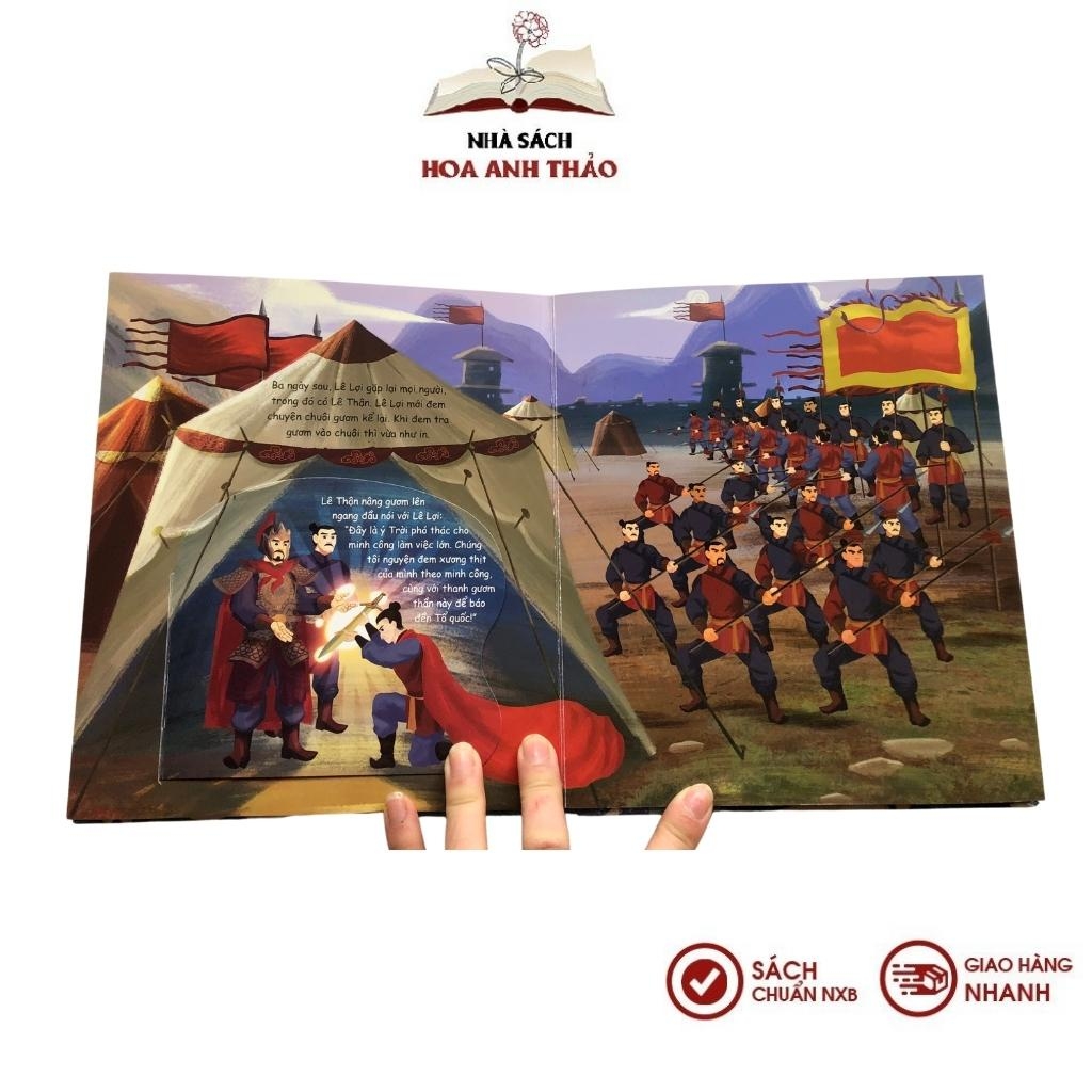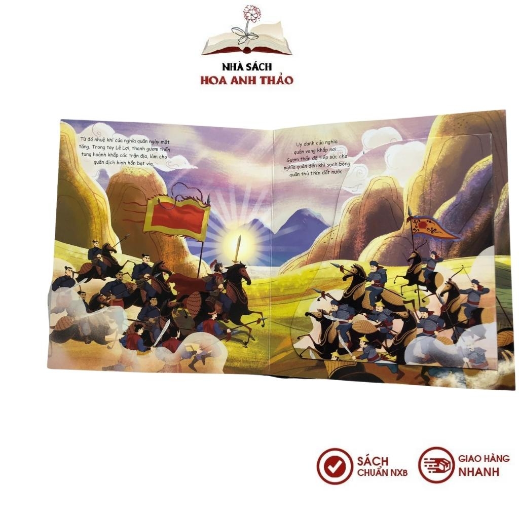 SÁCH - LẬT MỞ XUYÊN THẤU - BÍ MẬT PHÍA SAU TRANG SÁCH - SỰ TÍCH HỒ GƯƠM📜 THÔNG TIN CHI TIẾT Sách - Lật mở xuyên thấu - Bí mật phí sau trang sách - Sự tích Hồ Gươm☘ Mã sản phẩm: 8935212348799☘ Tác giả: Lời: Minh Trang/Minh họa: Tuấn Anh☘ Nhà Phát hành: Công ty TNHH TM & DV Văn hoá Đinh Tị☘ Địa chỉ:Nhà NV22 - Khu 12 - Ngõ 13 Lĩnh Nam - P. Mai Động - Q. Hoàng Mai - TP. Hà Nội☘ NXB Hà Nội ☘ Độ tuổi: 2-8 tuổi☘ Kích thước: 19.2x21.6cm☘ Năm xuất bản: 2019☘ Số trang: 14📖 GIỚI THIỆU SÁCH - LẬT MỞ XUYÊN THẤU - BÍ MẬT PHÍA SAU TRANG SÁCH - SỰ TÍCH HỒ GƯƠM❖ Giặc Minh đô hộ nước ta. Lê Lợi đã dựng cờ khởi nghĩa tại Lam Sơn nhưng thế yếu, lực lượng mỏng hơn nhiều so với kẻ thù nên bại trận, phải rút quân về. Một ngư dân tên là Lê Thận đi quăng lưới, cả ba lần đều kéo lên được một thanh sắt. Anh ta nhìn kĩ thì nhận ra đó là một lưỡi gươm liền thu lưới, trở về nhà. Lê Thận cất giữ lưỡi gươm trong nhà mình cẩn thận. Sau đó không bao lâu, Lê Lợi thua trận, bị giặc đuổi giết bèn chạy trốn vào rừng. Ở đó ông bắt được một chuôi gươm nạm ngọc trên cây đa đem tra vào lưỡi gươm ở nhà Lê Thận thì vừa như in. Lê Lợi liền biết đó là gươm thần. Từ khi có gươm thần, nghĩa quân đánh đâu thắng đấy. Cuối cùng cũng đánh tan được quân xâm lược, quét sạch kẻ thù ra khỏi bờ cõi đất nước. Lê Lợi lên ngôi vua, lấy hiệu là Lê Thái Tổ.❖ Một năm sau khi đánh thắng giặc, Lê Lợi đi thuyền chơi trên hồ Tả Vọng. Đức Long Quân liền sai Rùa Vàng ngoi lên lấy lại thanh gươm thần. Từ đó, hồ Tả Vọng được đổi tên thành Hồ Gươm, hay còn gọi là Hồ Hoàn Kiếm ngày nay.❖ Mỗi miếng lật, miếng đục trổ, bạn sẽ nhìn thấy những hình ảnh vô cùng oai phong khí thế của chủ tướng Lê Lợi lãnh đạo nghĩa quân Lam Sơn chiến thắng giặc Minh tàn bạo bằng chiếc gươm thần… Qua đó, các bạn còn biết được ý nghĩa của tên địa danh nổi tiếng của nước ta là Hồ Gươm (hay còn gọi là Hồ Hoàn Kiếm), hiểu thêm về lòng yêu nước và tinh thần đoàn kết của dân tộc.NHÀ SÁCH HOA ANH THẢO CAM KẾT1. 100% Sách mới, Chuẩn nhà xuất bản 2. Sản phẩm được kiểm tra kỹ, đóng gói cẩn thận trước khi giao đến quý khách 3. Giao hàng trên toàn quốc4. Hỗ trợ đổi trả theo quy định của Shopee. ∎ Điều kiện áp dụng (trong vòng 07 ngày kể từ khi nhận sản phẩm) - Hàng hoá vẫn còn mới, chưa qua sử dụng - Hàng hoá bị lỗi hoặc hư hỏng do vận chuyển hoặc do nhà sản xuất ∎ Trường hợp được chấp nhận: - Hàng giao không đúng như đơn quý khách đặt hàng - Không đủ số lượng, không đủ bộ như trong đơn hàng ∎ Trường hợp không đủ điều kiện áp dụng chính sách: - Quá 07 ngày kể từ khi Quý khách nhận hàng- Gửi lại hàng không đúng mẫu mã, không phải sản phẩm của Nhà sách Hoa Anh Thảo - Không thích, không hợp, đặt nhầm mã, ...#sach #hoaanhthao #quyen #truyen #tranh #truyentranh #latmo #xuyenthau #bimat #phiasau #trangsach #sutich #hoguom #tre #be #nhasach #nhasachonline #truyen #thieunhi #mamnon #sachhay #sachtreem