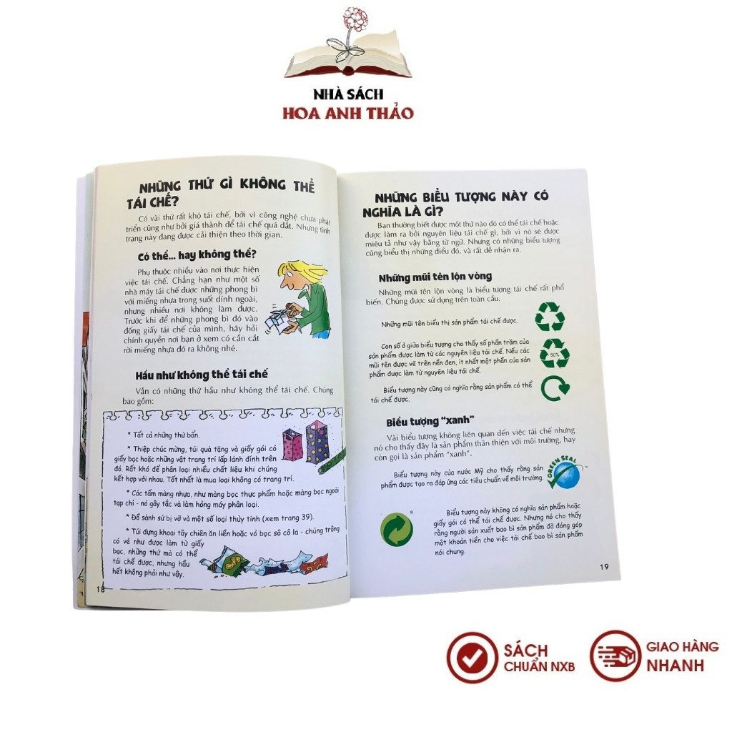 SÁCH - TẠI SAO TỚ NÊN TÁI CHẾ📜 THÔNG TIN CHI TIẾT SÁCH - TẠI SAO TỚ NÊN TÁI CHẾ☘ Tác giả: Susan Meredith; Minh họa: Christyan Fox☘ Nhà xuất bản: Hà Nội ☘ Nhà phát hành: Đinh Tị ☘ Năm xuất bản: 2021☘ Số trang: 48 trang ☘ Kích thước: 15 x 22 cm☘ Độ tuổi : trên 6 tuổi📖 GIỚI THIỆU SÁCH - TẠI SAO TỚ NÊN TÁI CHẾ❖ Hiện nay, ở Thái Bình Dương đang tồn tại một “đảo rác” lớn gấp 6 lần nước Pháp? Đó là hệ quả của việc con người đã và đang xả ngày càng nhiều rác ra môi trường. Trước thực trạng này, tái chế được coi là một giải pháp hiệu quả để cứu lấy Trái Đất. Và bạn biết không, gần hai phần ba những gì chúng ta vứt đi là có thể tái chế được đấy.Do đó thứ gì có thể tái chế, thứ gì không? Một qui trình tái chế chuẩn là như thế nào? Và một “tay mơ” nên bắt đầu từ đâu để tái chế, tái sử dụng hoặc tận dụng những món đồ cũ? Tất cả những câu hỏi đó đều sẽ được giải đáp trong cuốn sách này. Với những hướng dẫn tỉ mỉ và dễ hiểu, bạn sẽ cảm thấy việc tái chế trở lên vui hơn bao giờ hết đấy.NHÀ SÁCH HOA ANH THẢO CAM KẾT1. 100% Sách mới, Chuẩn nhà xuất bản 2. Sản phẩm được kiểm tra kỹ, đóng gói cẩn thận trước khi giao đến quý khách 3. Giao hàng trên toàn quốc4. Hỗ trợ đổi trả theo quy định của Shopee. ∎ Điều kiện áp dụng (trong vòng 07 ngày kể từ khi nhận sản phẩm) - Hàng hoá vẫn còn mới, chưa qua sử dụng - Hàng hoá bị lỗi hoặc hư hỏng do vận chuyển hoặc do nhà sản xuất ∎ Trường hợp được chấp nhận: - Hàng giao không đúng như đơn quý khách đặt hàng - Không đủ số lượng, không đủ bộ như trong đơn hàng ∎ Trường hợp không đủ điều kiện áp dụng chính sách: - Quá 07 ngày kể từ khi Quý khách nhận hàng- Gửi lại hàng không đúng mẫu mã, không phải sản phẩm của Nhà sách Hoa Anh Thảo - Không thích, không hợp, đặt nhầm mã, ...#sach #hoaanhthao #quyen #cuon #tranh #truyentranh #cotich #trochoi #sangtao #hoatdong #ngoaitroi #songngu #tre #be #5tuoi #nhasach #nhasachonline #truyen #thieunhi #mamnon #sachhay #sachtreem #taisao #taisaotonentaiche #baovethiennhien #baovemoitruong.