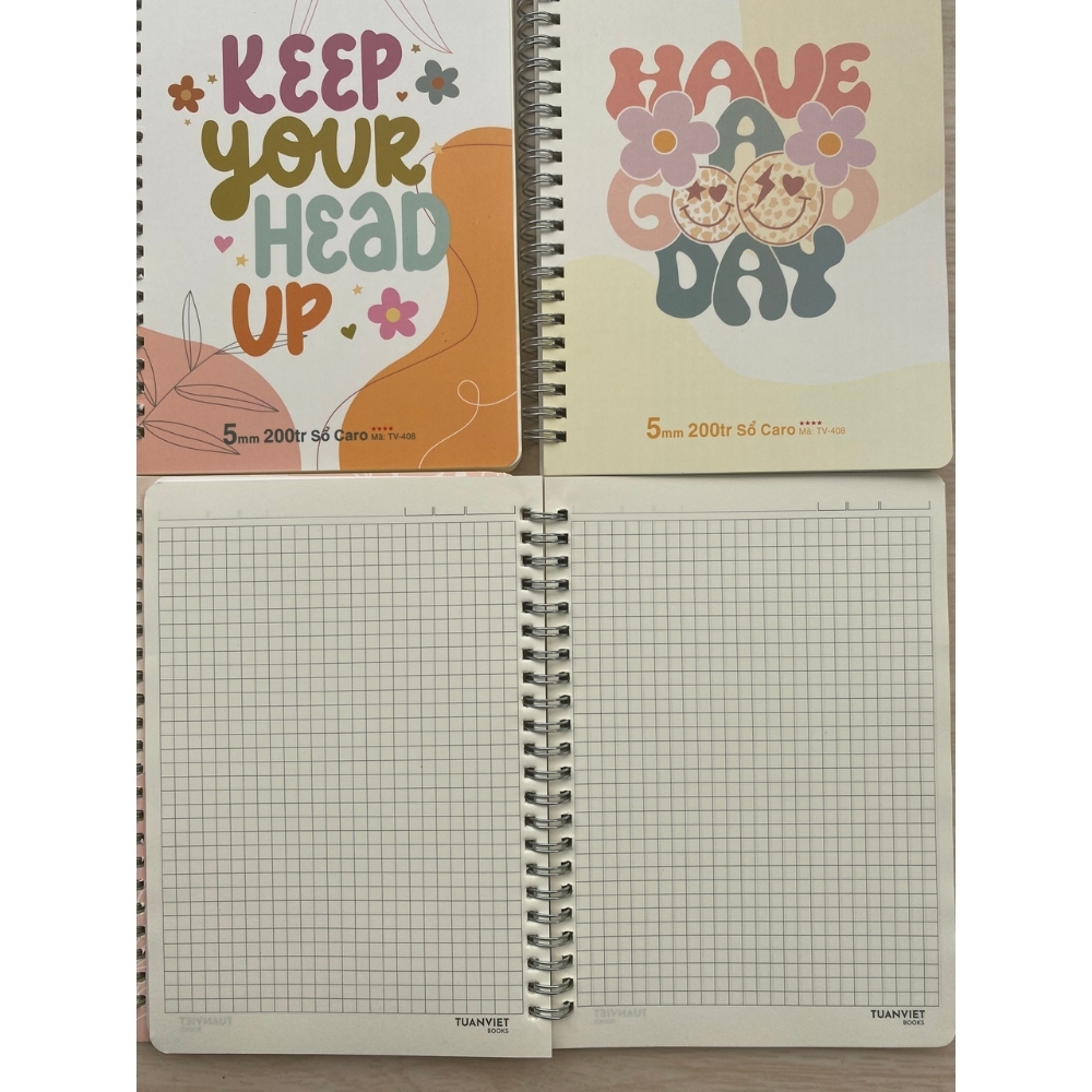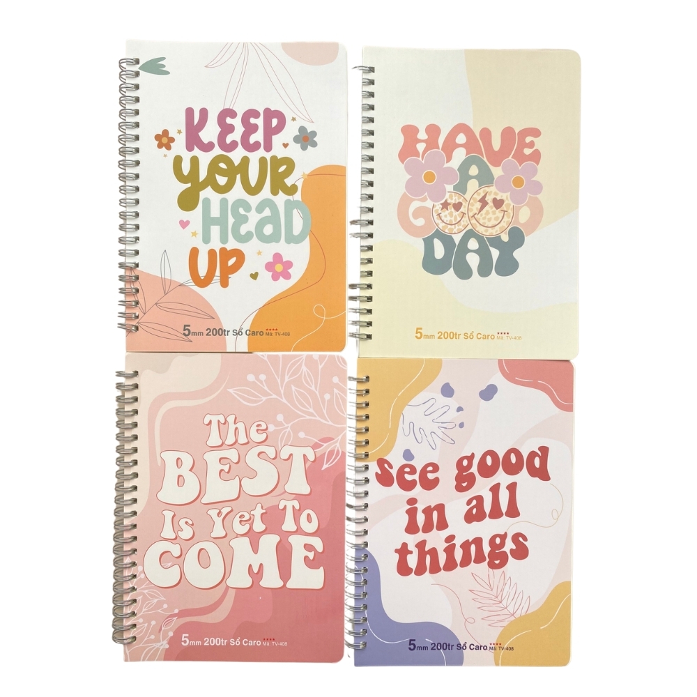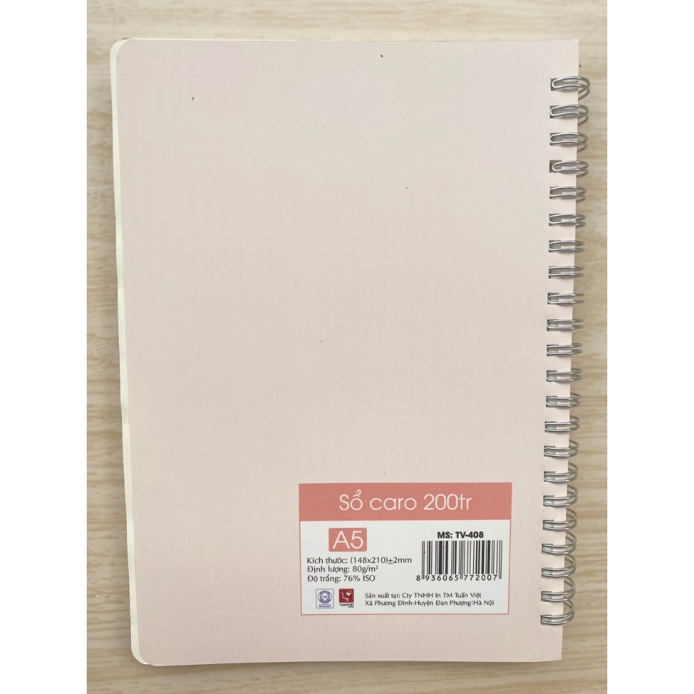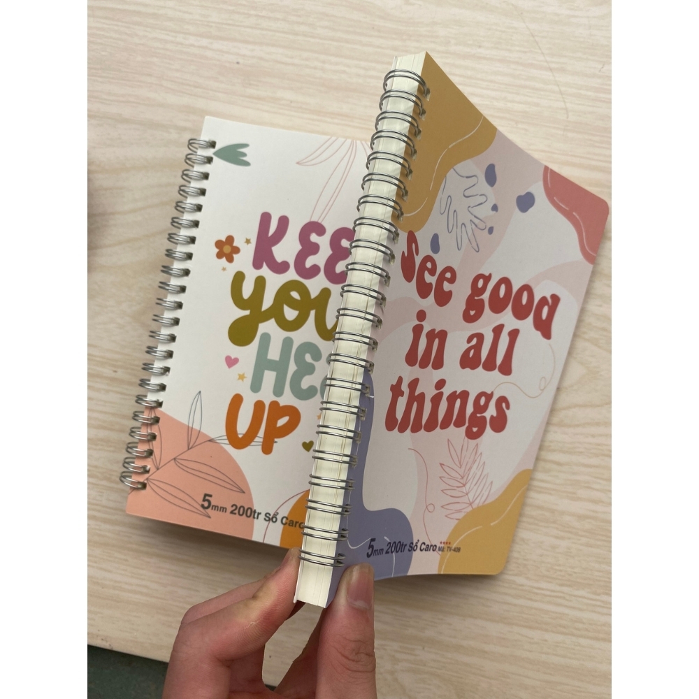 Sổ tay ghi chép lò xo kẻ caro 200 trang khổ A5 - Phù hợp làm sổ kế hoạch, sổ nhật kí, tập vở ghi chép- THÔNG TIN VÀ THÔNG SỐ KỸ THUẬT SẢN PHẨM1. Loại sổ: Gáy xoắn2. Số trang: 200 trang3. Kích cỡ: A54. Định lượng giấy: 80gsm5. Xuất xứ: Việt Nam MÔ TẢ SẢN PHẨM1. Sản phẩm sổ tay hoạt hình đơn giản phù hợp với nhiều lứa tuổi2. Bìa sổ được in bằng công nghệ in offset chất lượng hình ảnh cao, sắc nét. Giấy được sử dụng là giấy trắng tự nhiên chống lóa mắt, giúp mắt không bị mỏi khi nhìn lâu3. Gáy sổ được làm bằng chất liệu Inox cao cấp, cự kỳ cứng cáp và không bị hoen, gỉ theo thời gian 4. Sổ được thiết kế cứng cáp do sử dụng công nghệ đặc biệt, chống gãy, nát hoặc bị gập khi để sổ trong cặp sách, hoặc sổ bị đè lên chịu lực nhiều